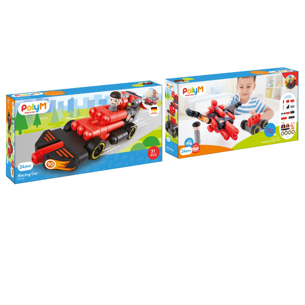 Put together your own racing car with this fun kit. Includes 31 blocks including two wheel-sets, one figurine, one set of eye stickers, one set of racing stickers and assembly instructions. Recombine the blocks to make your own amazing race cars and other vehicles.