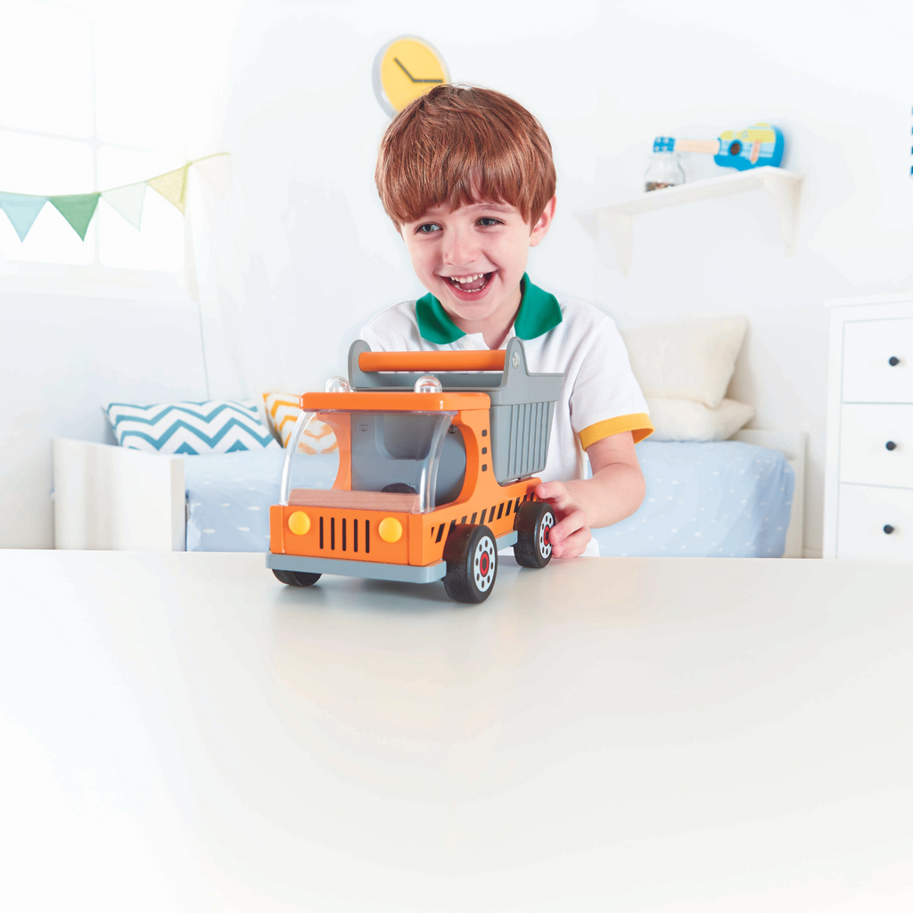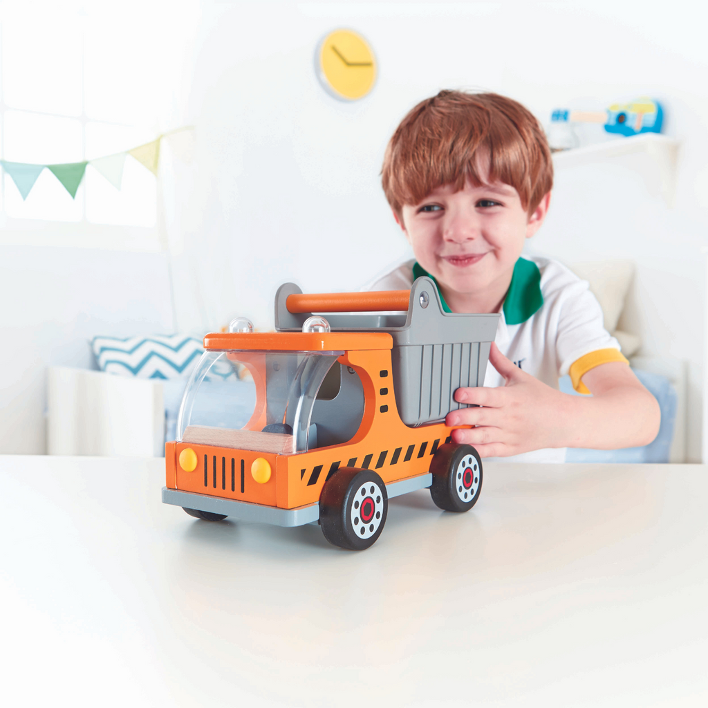 Take your building projects to a whole new level with this great dumper truck exclusively from Hape Toys! With wheels that easily move, as well as a dumper that is ready to tackle any backyard dirt pile, this Dumper Truck is perfect for the curious builder in your life. Encourages imagination as kids role play real life situations. Read along your favorite building storybook or create your own adventures, the options are endless!