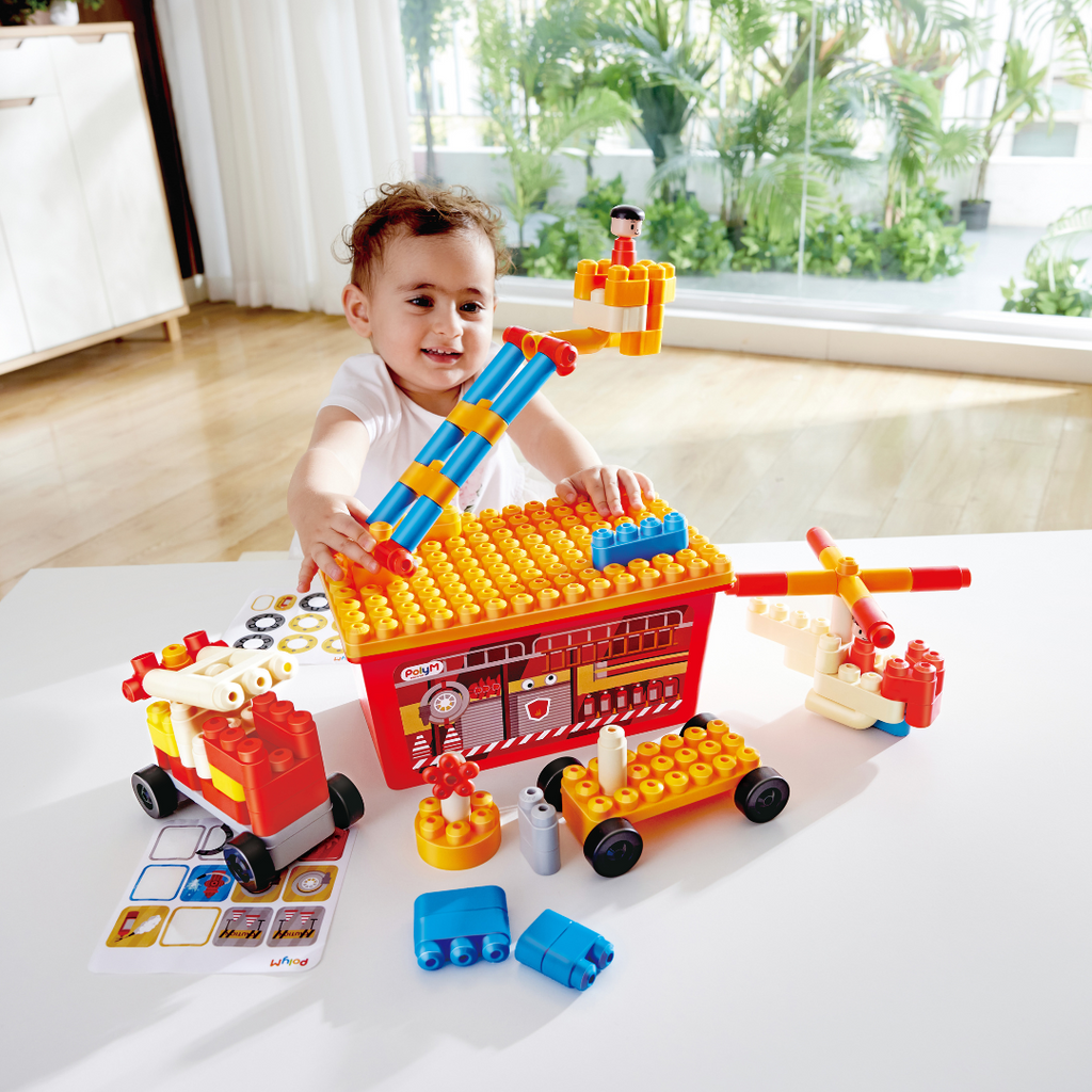 Learn about firefighting with this truck! Follow the inspiration leaflet to build a fire truck and various fire rescue vehicles to extinguish fire and save life. Easy maintenance and noiseless play make it perfect for your children.